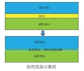 是指溶劑溶解塑料表面使塑料表面間材料混合,當溶劑揮發后,就形成了接頭。